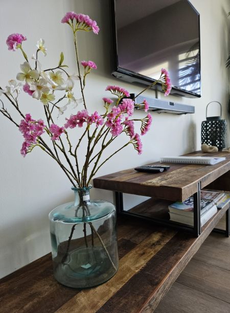 Luxe ingericht 3 kamer appartement van ca 90m2. Ruime woonkamer met privé terras en volwaardige keuken. 2 slaapkamers en ruime badkamer met inloop douche. - Volledig voorzien van airconditioning - Plafond ventilatoren in Woonkamer en Master - Fire TV met alle streamingdiensten in woonkamer en Master - Mooie goed onderhouden gezamenlijke tuin en zwembad - Goed uitgerust voor een zorgvrij verblijf - Snelle en sterke WiFi 6 installatie (110 Mbps gemeten)